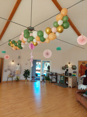 Ein kleiner Einblick: Bei einer Babyparty starten wir mit einer sanften Yogaeinheit – auch für werdende Mamas geeignet – und gestalten im Anschluss kleine Erinnerungsstücke, zum Beispiel mit Siebdruck auf Babykleidung.