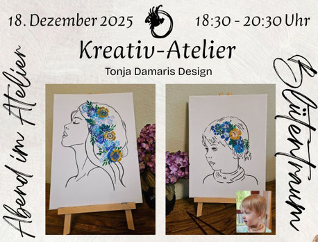 In entspannter Atmosphäre erschaffen wir gemeinsam ein Bild voller Leichtigkeit und Farben. Mit Marker gestalten wir einen zarten Umriss und verzieren mit bunten Acrylblumen – ganz ohne Vorkenntnisse.